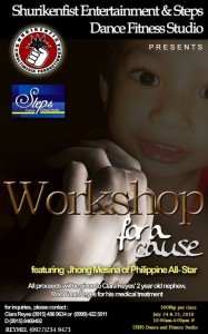 Join the Dance Workshop for Cause on July 24-25, 10:00am – 4:00pm at Step Dance and Fitness Studio. The dance workshop will be led by a proud member of Philippine All Star, Mr. Jhong Mesia. For only Php300 you’ll surely learn the latest and hottest hip hop dance moves and at the same time help Baby Ynoc as he prepares for an open heart surgery on August 2010.