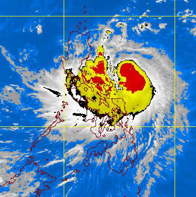 According to PAGASA, At 4:00 a.m. today, Typhoon “PEPENG” (PARMA) was estimated based on satellite and surface data at 650 kms East of Borongan, Eastern Samar (11.5°N, 132.1°E) with maximum sustained winds of 150 kph and gustiness of up to 185 kph. It is forecast to move West Northwest at 24 kph.
