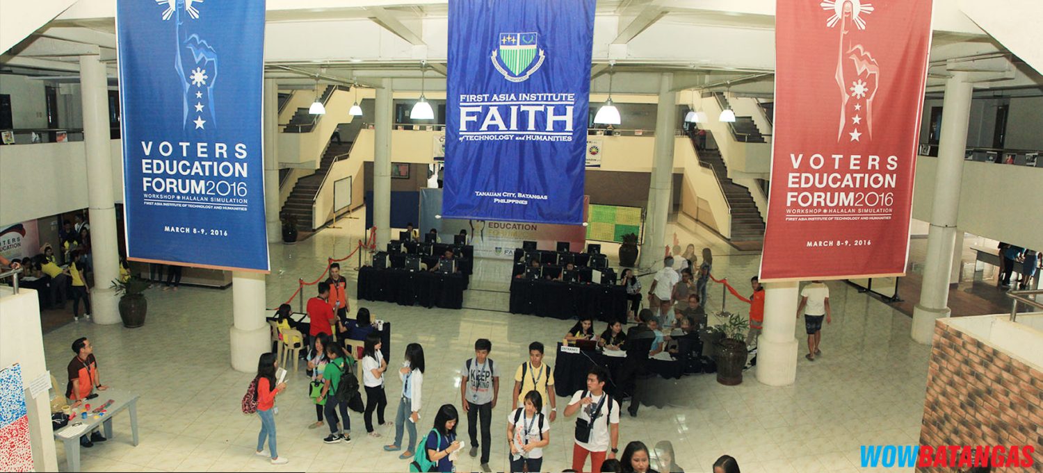 Students, Members of the Faculty and the community composed of local officials, housewives, out of school youth, PWDs, professional, self-employed, urban poor, PUJ drivers led the voter’s Education Forum and Mock Elections this morning, March 9, 2016 at First Asia Institute of Technology and Humanities Campus.